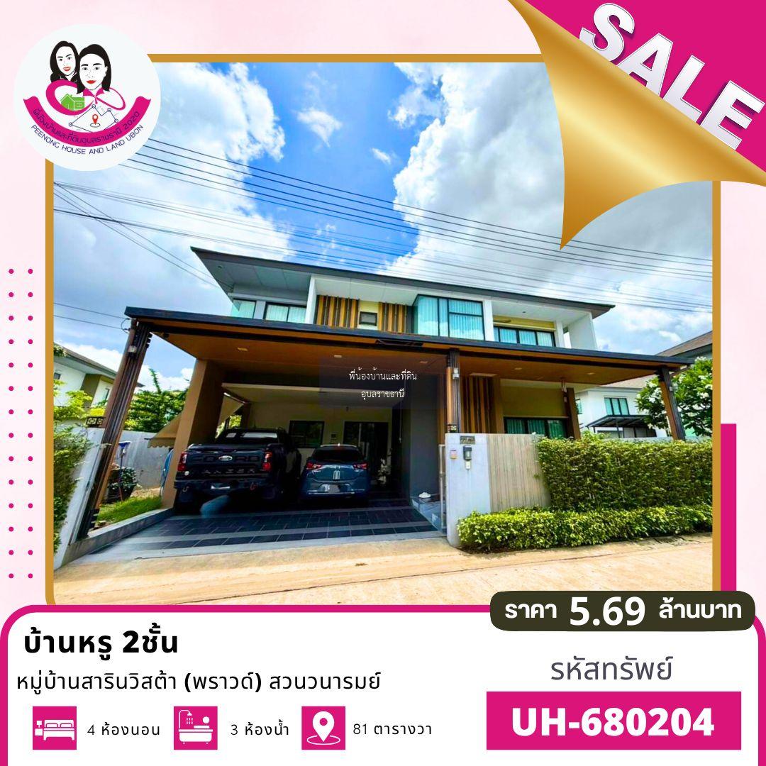 ขายบ้านเดี่ยว 2 ชั้นหลังใหญ่ ในโครงการหรู สารินวิสต้า (พราวด์) สวนวนารมย์