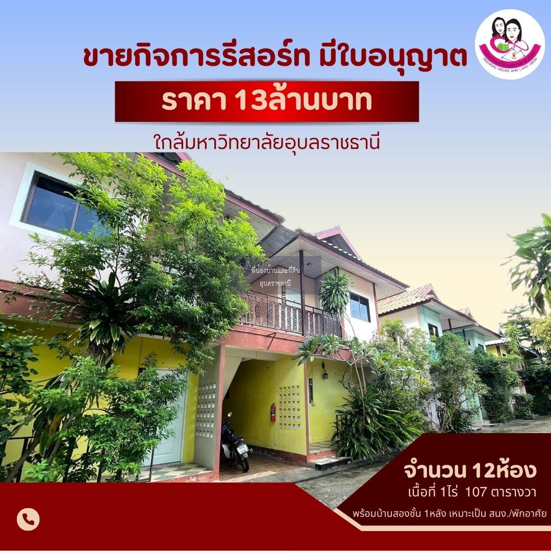 Resort for sale, ready to operate immediately, next to a 4-lane road, close to Ubon Ratchathani University, only 2 km.