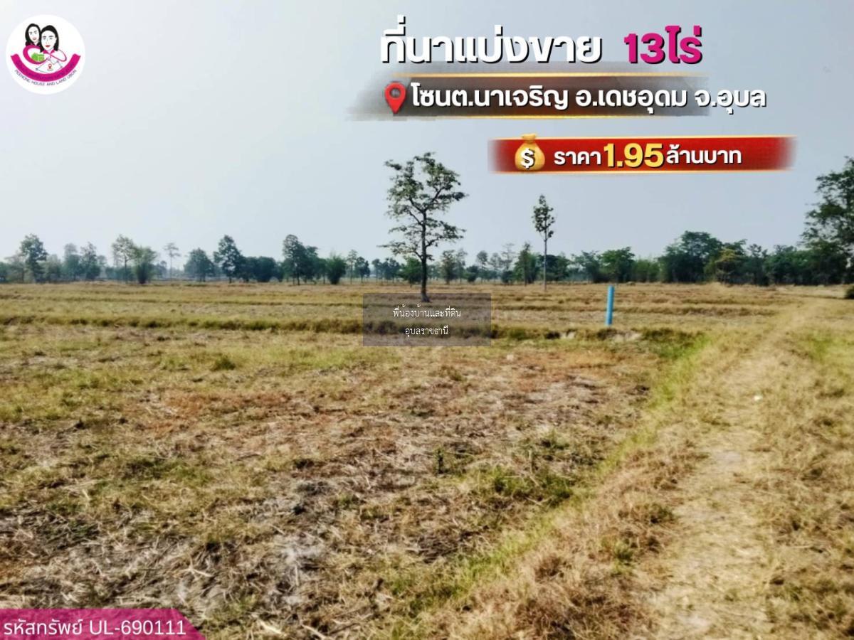 Large plot of rice field for sale, Na Charoen Subdistrict Zone, Det Udom District, Ubon Ratchathani Province